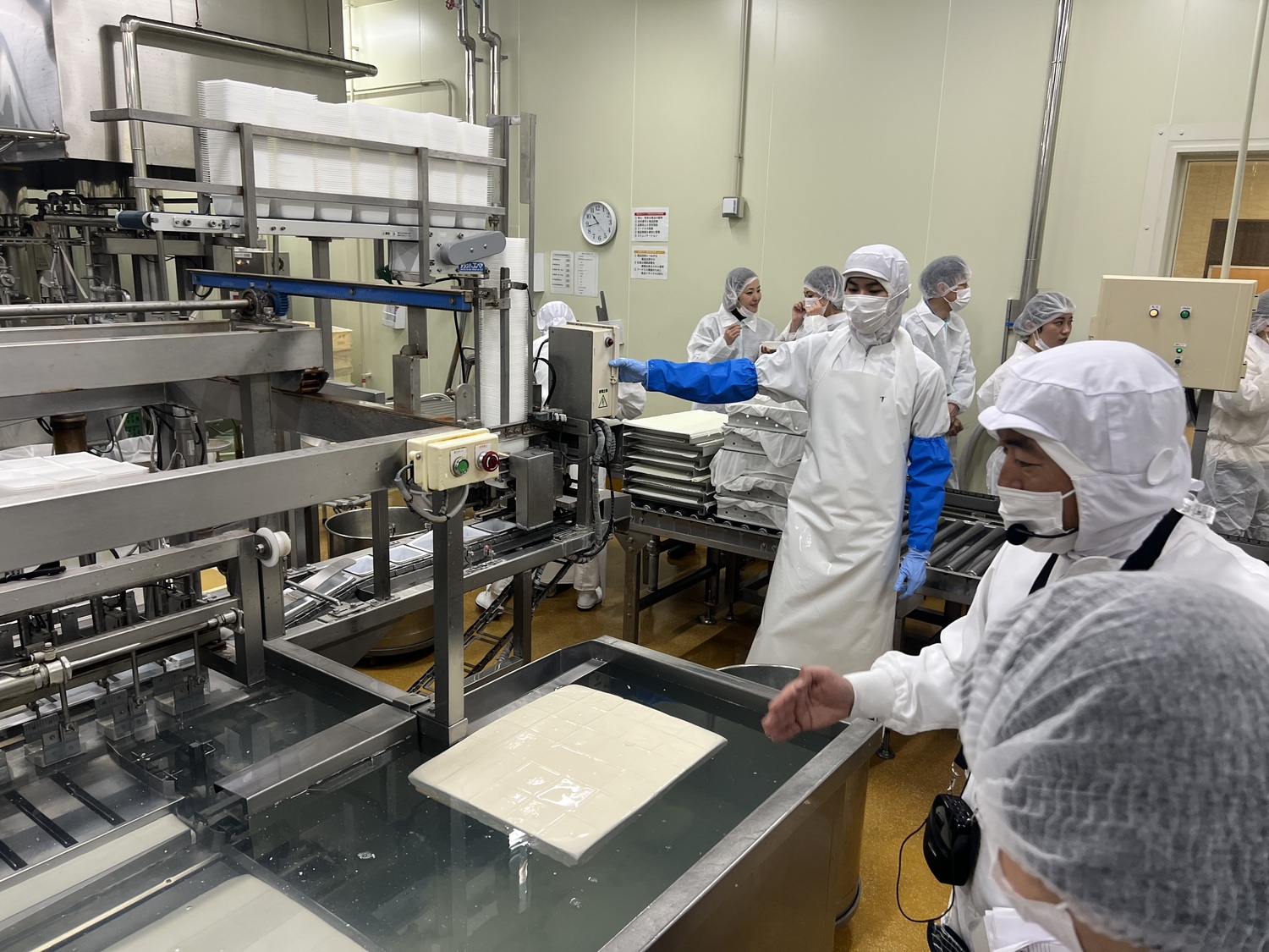 白衣と帽子を着用し、しっかり手洗いをして工場内へ。