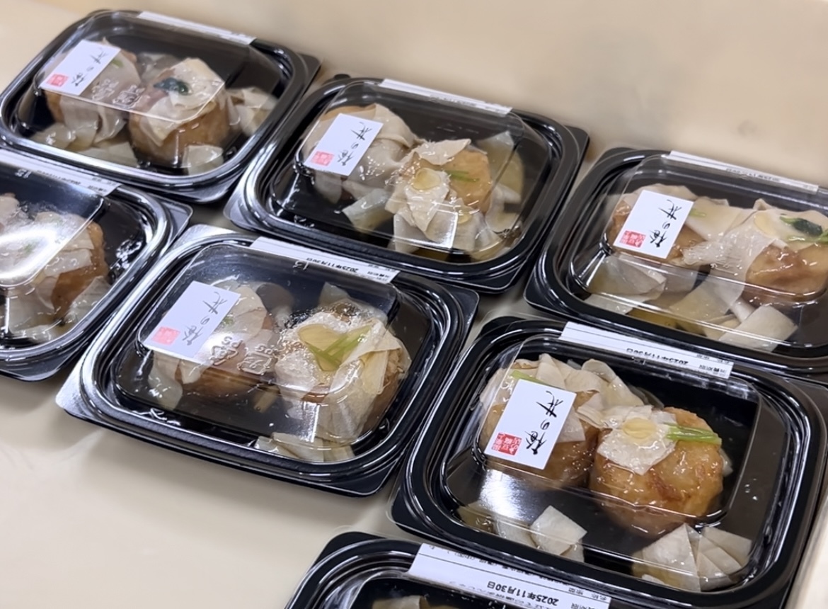 ほか、筑前煮やおでん、大豆ミートのしぐれ煮、そして大人気商品のお豆腐しゅうまいを作っている様子、さらには、お料理をして出た端材の行き先も案内してくださいました。