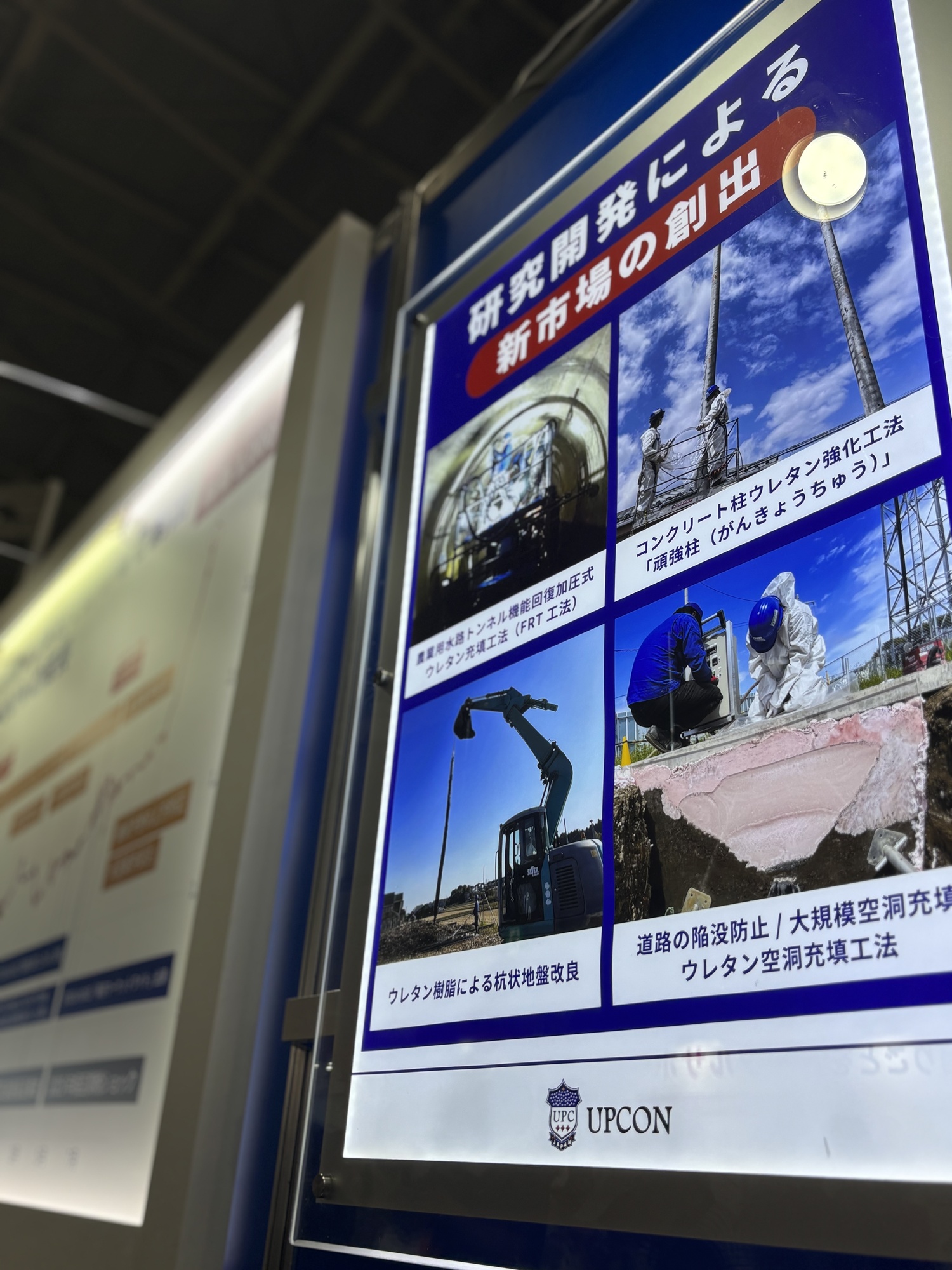 ウレタン樹脂を活用した施工にはさまざまなメリットがあり、社長さんの説明にはとても納得感がありました。人手不足や公共インフラの老朽化が進むと予想される今後の日本にとって、アップコンさんのような事業を手掛ける会社さんは重要度が増していくのでは、と思いました😃