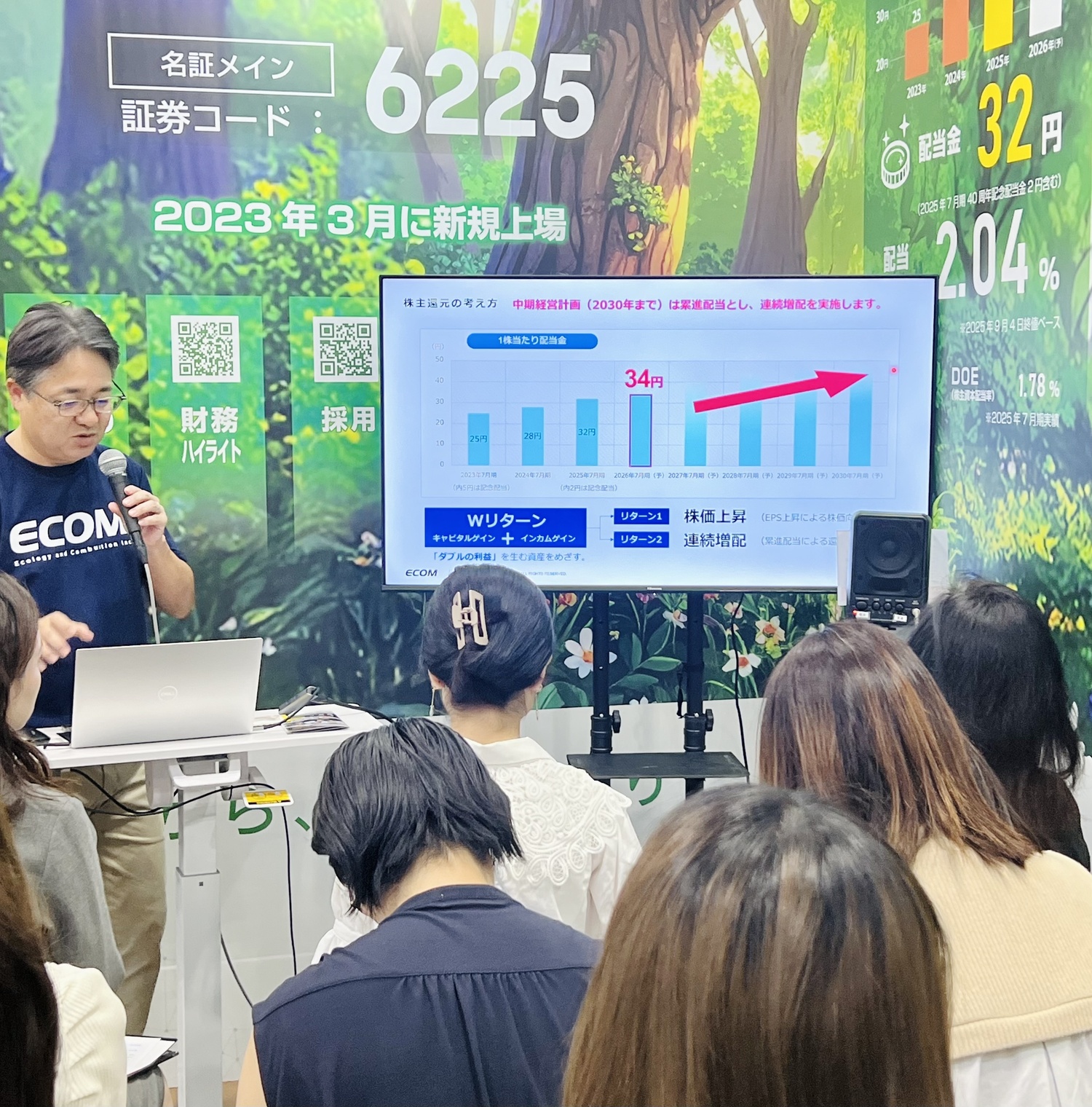 名証IR EXPO2025、きんゆう女子。IRアンバサダーのメンバーと一緒に「説明会」に参加いたしました♪今回のレポートは、株式会社 エコム(6225)さんです。