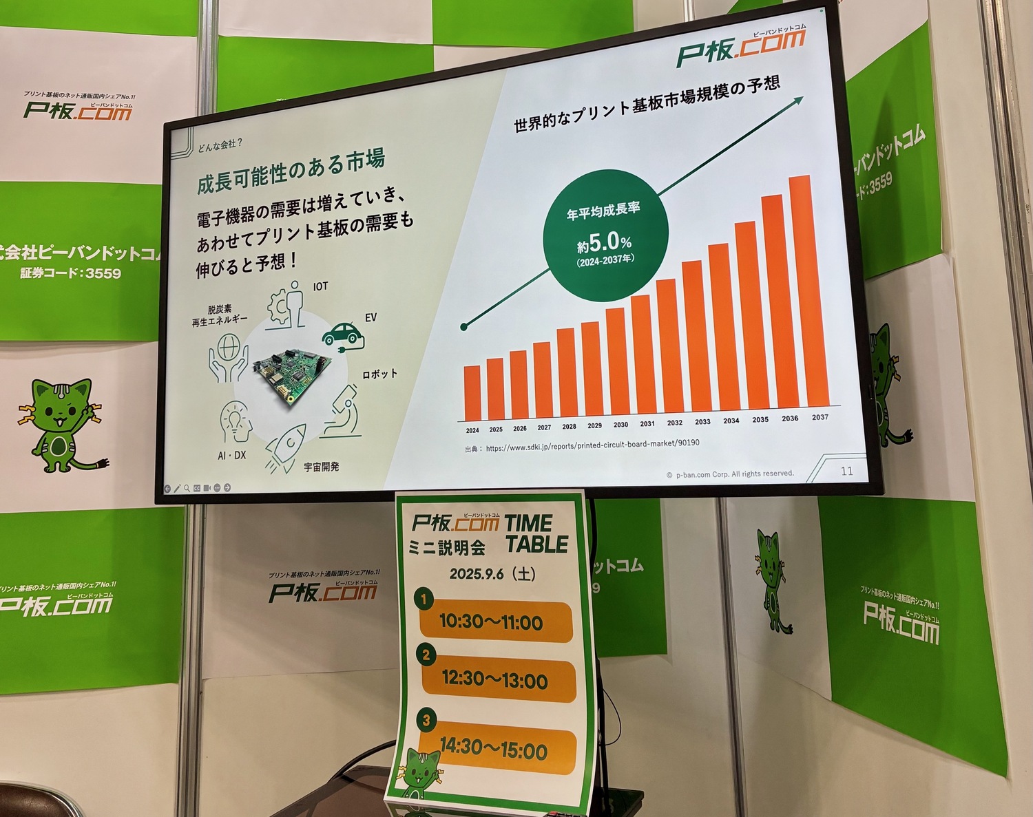 事業内容:プリント基板ネット通販サイト「P板.com(ピーバンドットコム)」の運営を中心に、設計・製造・部品実装までをインターネット上でワンストップ提供するサービスを展開。